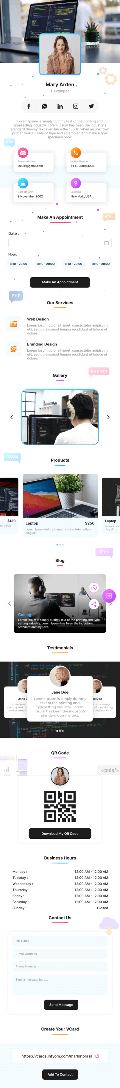 vCard de desarrollador